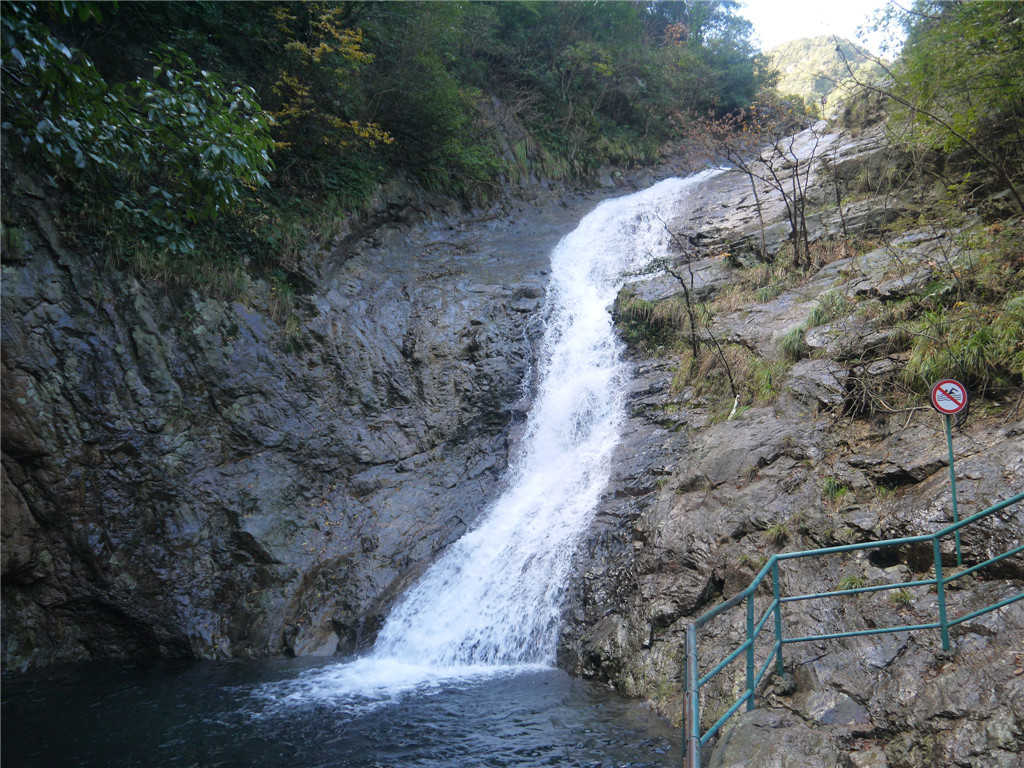 【龙字石刻(沙孟海书)和百丈瀑。毕竟是秋季了,前阵子虽然下了雨,但和春夏季无法比较】