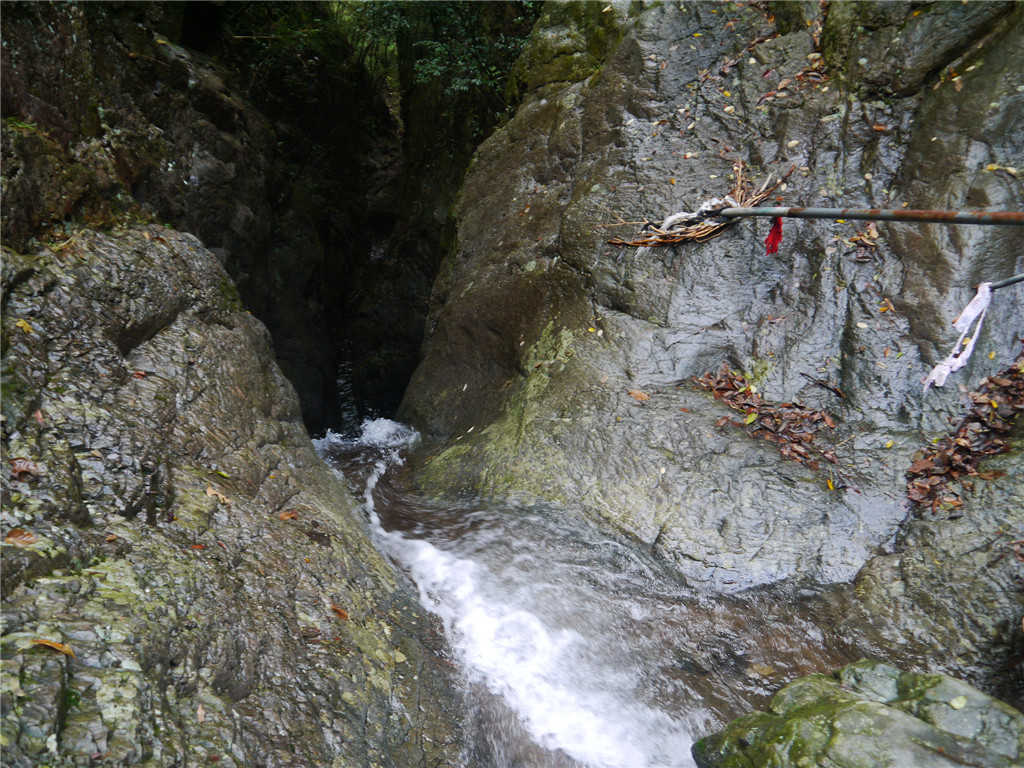 【潭边岩壁是凹进去的,此潭是五井龙潭中最深的一个,潭边也是旧时百姓祈雨时的祭天场所】